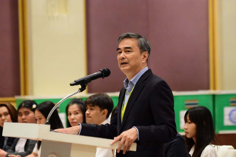 นายอภิสิทธิ์ กล่าวอีกว่า วันนี้ที่ตนนำคนรุ่นใหม่เข้ามา ต้องขอบคุณทุกคนที่ยกเว้นคุณสมบัติและข้อบังคับพรรค เพื่อให้โอกาสเข้ามาทำงาน เพราะวันนี้เป็นสิ่งที่ประเทศไทยต้องการที่สุด คือเครื่องจักรที่ทำให้ประเทศไทยโตได้ เราพึ่งพาสิ่งที่เคยมีบุญจากอดีตต่อไปไม่ได้ ภาคเกษตรเราเคยภูมิใจว่าเราอุดมสมบูรณ์ วันนี้ประสิทธิภาพการผลิตเราตามหลังเพื่อนบ้าน ภาคอุตสาหกรรมและไม่สามารถแข่งขันจากค่าแรงที่ไม่ถูกเหมือนเดิมได้ ขณะที่ภาคการท่องเที่ยว เมื่อนักท่องเที่ยวจีนหายไปครึ่งหนึ่ง ก็เดือดร้อนกันไปทั่วในหลายสาขาธุรกิจเครื่องจักรใหม่บางครั้งก็เกิดขึ้นจากการเปลี่ยนแปลงของโลก ตนนำคนอย่างนางการดี เลี่ยวไพโรจน์ เพราะเทคโนโลยีจะชี้นำการเปลี่ยนแปลงของโลกและเศรษฐกิจ คนไทยใช้เทคโนโลยีเก่งมาก เรามีซิมโทรศัพท์มือถือกว่าเท่าตัวของประชากร เราเป็นประเทศที่ใช้การโอนเงินทางอิเล็กทรอนิกส์ แต่ขอให้ไปดูสิ่งที่เรียกว่าเศรษฐกิจดิจิทัลมูลค่าเพิ่ม ตกอยู่กับมือคนไทยเพียงน้อยนิด ตนไม่อยากให้พรรคการเมืองคิดได้แค่ว่านโยบายอะไรที่ฟังดูแล้วถูกใจ มีเงินในกระเป๋าเพิ่มขึ้นแค่ชั่วครู่ชั่วยาม เราต้องนำตรงนี้มาเป็นตัว เทคโนโลยีมีศักยภาพมหาศาล