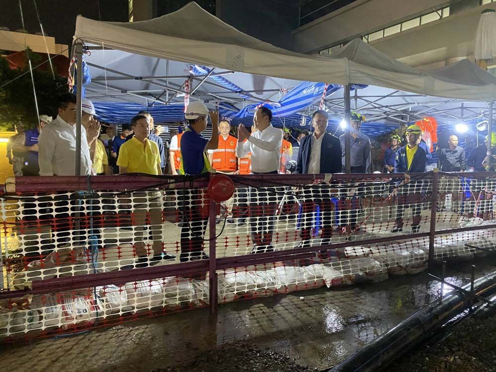 นายกรัฐมนตรีได้เดินตรวจพื้นที่โดยรอบ พร้อมรับฟังการชี้แจงจากวิศวกรโยธาและเจ้าหน้าที่กรุงเทพมหานคร เกี่ยวกับแนวทางการซ่อมแซมถนน รวมถึงการรื้อถอนอาคารสถานีตำรวจนครบาลสามเสน ซึ่งต้องดำเนินการด้วยความระมัดระวังเป็นพิเศษ