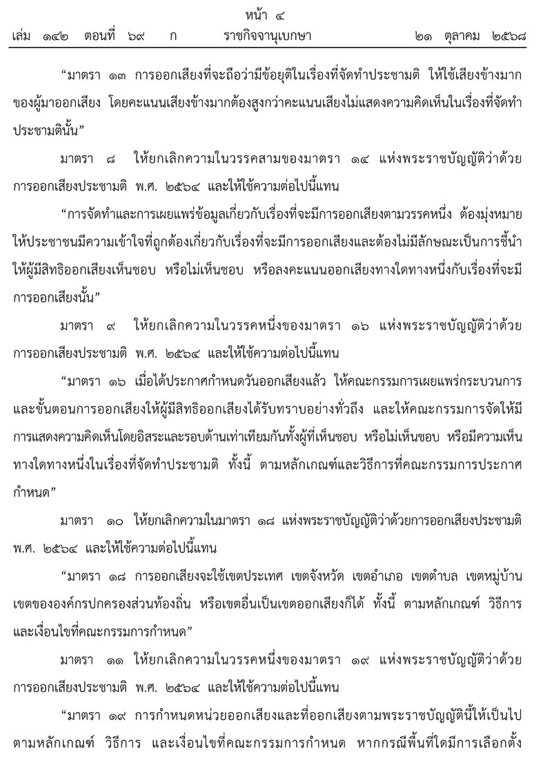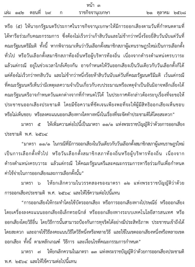 ราชกิจจาฯ ลงประกาศ พ.ร.บ.ประชามติ ฉบับที่2 แล้ว มีผลบังคับใช้พรุ่งนี้ เปิดทางประชามติวันเดียวกับวันเลือกตั้ง-ลดเกณฑ์ผ่านประชามติด้วยเสียงข้างมากผู้ออกมาใช้สิทธิ