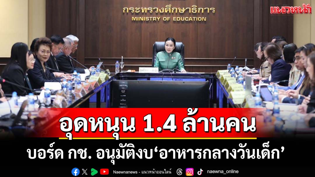 “รมว.นฤมล”ประชุมบอร์ด กช. อนุมัติงบอุดหนุนอาหารกลางวันเด็กเอกชน-เอกชนการกุศลฯ กว่า 1.4 ล้านคนทั่ว ปท. เผย เตรียมชง ครม.ขอรับงบกลางปี 69 พร้อมเร่งดันร่าง พ.ร.บ.โรงเรียนเอกชนฉบับใหม่เข้าสภา