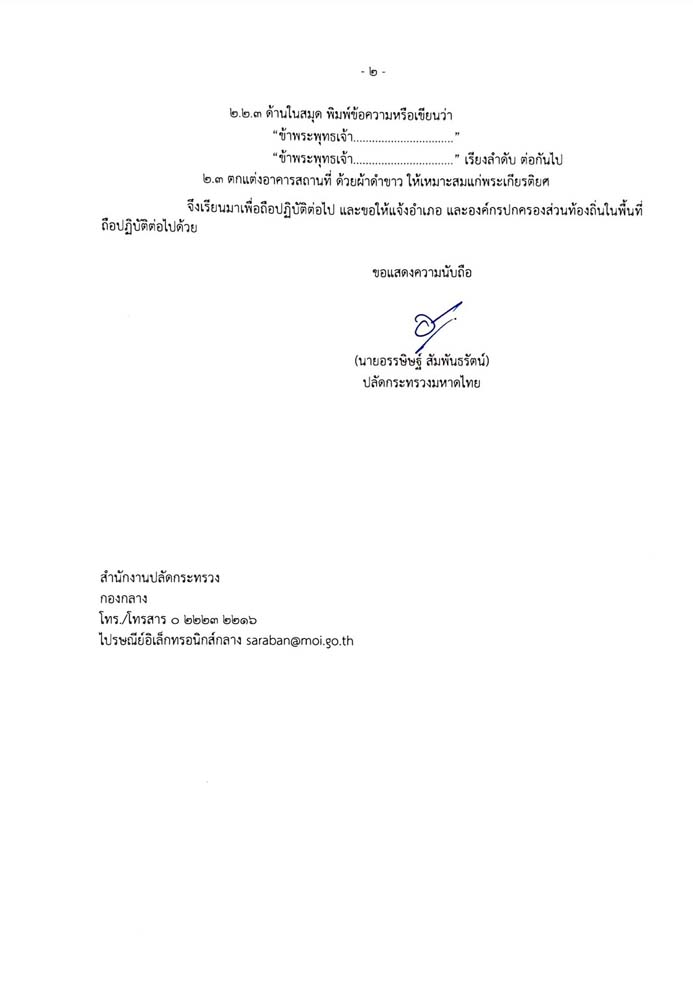 2.1 จัดโต๊ะหมู่บูชา ประดิษฐานพระฉายาลักษณ์สมเด็จพระนางเจ้าสิริกิตี์ พระบรมราชินีนาถ พระบรมรายขนนีพันปีหลวง (ภาพสีหรือขาวดำ) พร้อมประดับเครื่องทองน้อย และไว้ทุกข์ ตามอาคารสถานที่ของหน่วยงาน ตั้งแต่วันที่ 25 ตุลาคม 2568 เป็นต้นไป