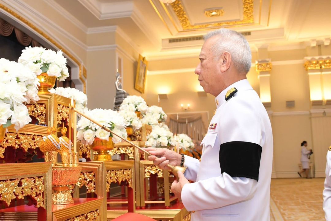เมื่อเวลา 07.30 น. วันที่ 30 ตุลาคม ที่ตึกสันติไมตรี ทำเนียบรัฐบาล สมเด็จพระพุฒาจารย์ กรรมการมหาเถรสมาคม เจ้าคณะใหญ่หนตะวันออก และเจ้าอาวาสวัดไตรมิตรวิทยาราม เป็นประธานฝ่ายสงฆ์ ในการนี้ นายกรัฐมนตรี มอบหมายให้ นายพิพัฒน์ รัชกิจประการ รองนายกรัฐมนตรี และรัฐมนตรีว่าการกระทรวงคมนาคม เป็นประธานฝ่ายฆราวาส ในพิธีบำเพ็ญกุศลสัตตมวาร (7 วัน) ถวายเป็นพระราชกุศลแด่สมเด็จพระนางเจ้าสิริกิติ์ พระบรมราชินีนาถ พระบรมราชชนนีพันปีหลวง โดยมีคณะรัฐมนตรี (ครม.) หัวหน้าส่วนราชการในสังกัดสำนักนายกรัฐมนตรี ข้าราชการ และเจ้าหน้าที่หน่วยงานในทำเนียบรัฐบาล เข้าร่วมพิธีฯ