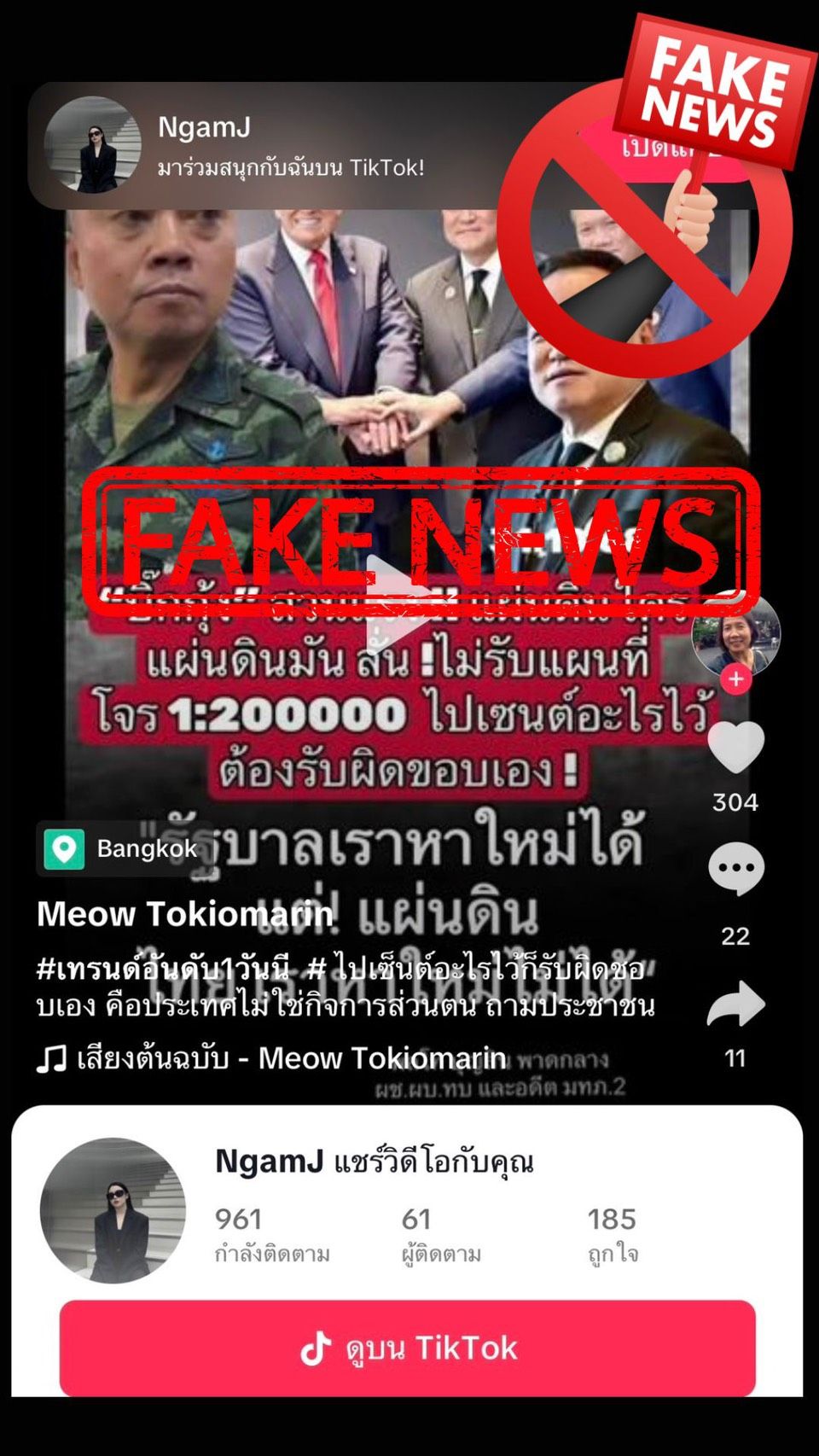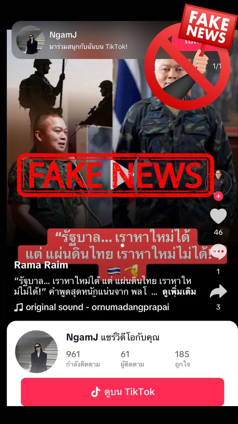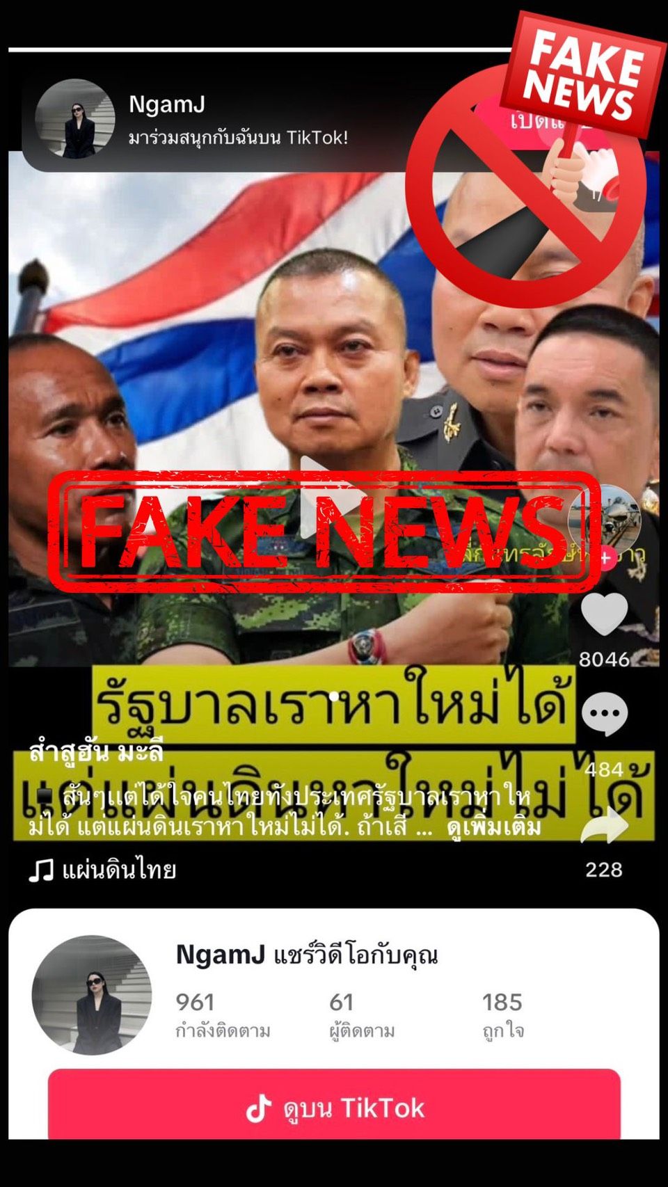 'แม่ทัพกุ้ง'ของดแชร์เฟกนิวส์คลิป-ข้อความ 'รัฐบาลหาใหม่ได้ แต่แผ่นดินหาใหม่ไม่ได้' ยันไม่เคยพูด-ให้สัมภาษณ์ในเวทีใด ด้วยข้อความดังกล่าว