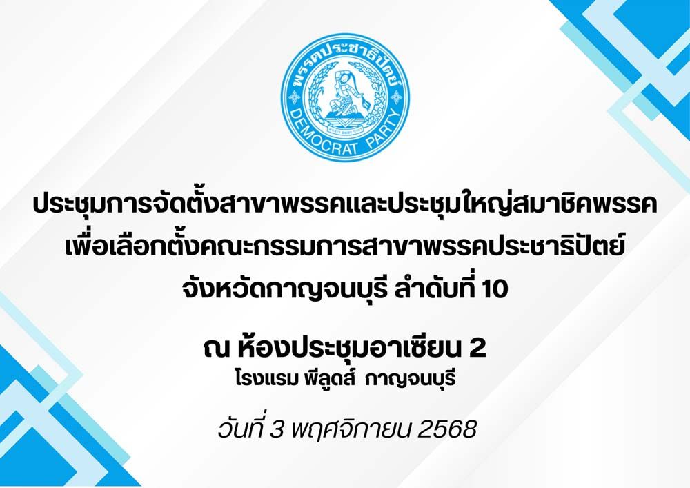 วันที่ 5 พฤศจิกายน 2568 ผู้สื่อข่าวรายงานว่า เมื่อวันที่ 3 พ.ย.ที่ผ่านมา พรรคประชาธิปัตย์ (ปชป.)ได้จัดประชุมการจัดตั้งสาขาพรรคและประชุมใหญ่สมาชิกพรรค เพื่อเลือกตั้งคณะกรรมการสาขาพรรคประชาธิปัตย์ จังหวัดกาญจนบุรี ลำดับที่10 ขึ้นที่ห้องประชุม อาเซี่ยน 2 โรงแรมพิลูดส์ กาญจนบุรี ต.ปากแพรก อ.เมือง จ.กาญจนบุรี โดยมีคณะกรรมการการเลือกตั้งประจำจังหวัดกาญจนบุรี เข้าร่วมสังเกตการณ์ มีสมาชิกพรรคประชาธิปัตย์จังหวัดกาญจนบุรีเกือบ 200 คน เข้าร่วมประชุม โดยในที่ประชุมมีมติเป็นเอกฉันท์เห็นชอบยกมือเลือกนางศรีสมร รัศมีฤกษ์เศรษฐ์ หรือ “ซ้อเจน”เป็นหัวหน้าสาขาพรรคประชาธิปัตย์ จังหวัดกาญจนบุรี ลำดับที่10 โดยมีคณะกรรมการสาขาพรรคฯ รวม 11 คน