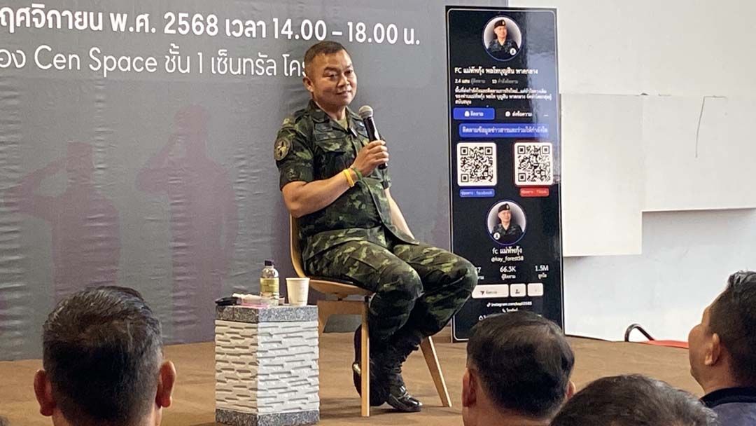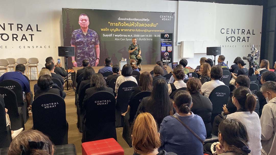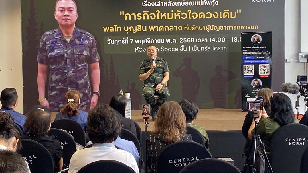 7 พฤศจิกายน 2568 ที่บริเวณชั้น 1 เซ็นทรัลโคราช อ.เมือง จ.นครราชสีมา พลโท บุญสิน พาดกลาง ที่ปรึกษาผู้บัญชาการทหารบก อดีตแม่ทัพภาคที่ 2 และอดีต ผอ.รมน.ภาค 2 เป็นประธานบรรยายในหัวข้อ “เรื่องเล่าหลังเกษียณแม่ทัพกุ้ง ภารกิจใหม่หัวใจดวงเดิม” มีประชาชนชาวโคราชที่สนใจและบรรดาเอฟซีของแม่ทัพกุ้งที่เดินทางมาจากต่างจังหวัดได้เข้าร่วมรับฟังการบรรยายในครั้งนี้