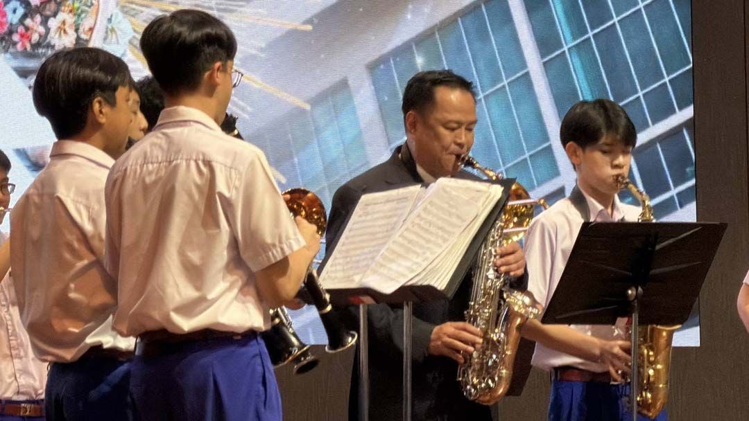ก่อนที่นายอนุทินร่วมเล่นแซกโซโฟนกับวงดุริยางค์โรงเรียนอัสสัมชัญ (AC Band) ในเพลงสดุดีอัสสัมชัญ และเพลง Stars and Stripes Forever ซึ่งนายกฯเคยเป็นสมาชิกของวงดังกล่าวเมื่อครั้งที่ศึกษาอยู่
