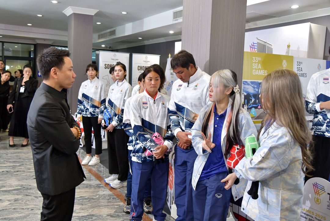 โดยนายอนุทิน ได้สอบถามนักกีฬาแต่ละคนว่าเล่นกีฬาอะไร พร้อมให้กำลังใจ ก่อนเขียนคำอวยพรให้กำลังใจว่า “สู้สุดหัวใจ เพื่อคนไทยทุกคน” และกล่าวว่า ขอให้ได้เหรียญทอง รัฐมนตรีจะอัดฉีดให้อย่างเต็มที่ ขณะที่นักกีฬาได้มอบตุ๊กตามาสคอตซีเกมส์ 2025 คือ "เดอะสาน (The Sans)" พร้อมทั้งมอบหมวกซีเกมส์ ให้กับนายกฯ ไว้เป็นที่ระลึก