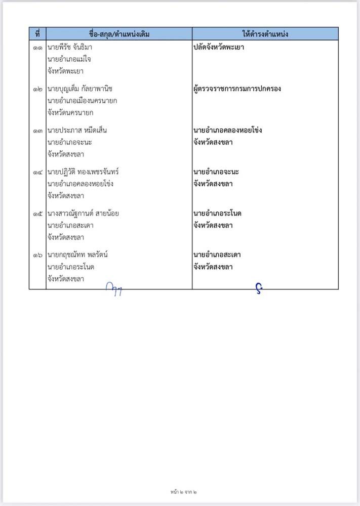 นอกจากนี้ ปลัดกระทรวงมหาดไทย ยังได้ลงนามในคำสั่งแต่งตั้งข้าราชการตำแหน่งอำนวยการระดับสูง ในตำแหน่งปลัดจังหวัด นายอำเภอ และผู้ตรวจฯกรมการปกครอง อีก 16 ตำแหน่ง ในวันเดียวกันอีกด้วย