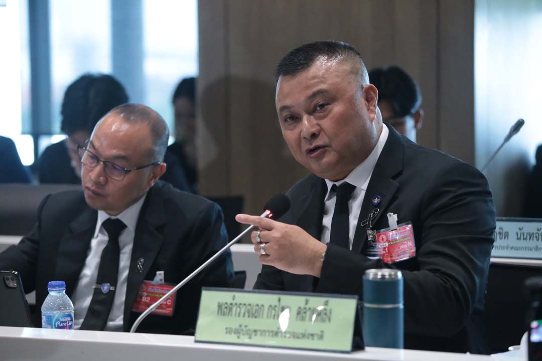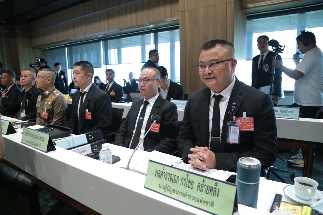 อย่างไรก็ตาม พล.ต.ท.ไตรรงค์ ผิวพรรณ รองจเรตำรวจแห่งชาติ ได้ชี้แจงตลอดการประชุมว่าตนยังไม่สามารถตอบได้ เพราะไม่ได้เกี่ยวข้อง บางคำถามก็ไม่ได้เตรียมข้อมูลมา ตนเตรียมข้อมูลมาแค่ 3 คำถามที่ส่งไปให้แค่นั้น ดังนั้น ขอให้เขียนให้ละเอียดว่าจะถามอะไรบ้าง จะได้มอบหมายให้ผู้ที่รับผิดชอบจริงมาตอบ ซึ่งอีกฝั่งมีข้อมูลเยอะ แต่ฝั่งเราไม่มีข้อมูล ดังนั้น ขอให้เชิญมาอีกรอบ และระบุว่าจะต้องตอบในประเด็นไหนบ้าง