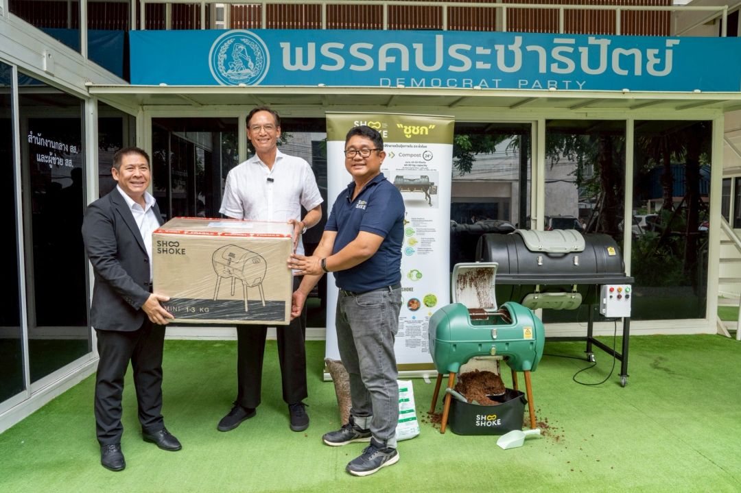 เมื่อวันที่ 14 พ.ย.2568 นายกรณ์ จาติกวณิช รองหัวหน้าพรรคประชาธิปัตย์ ในฐานะผู้ร่วมก่อตั้งสตาร์ทอัพนวัตกรรมไทย "ShooShoke (ชูชก)" ได้ส่งมอบเครื่องย่อยเศษอาหาร "ShooShoke Home Mini" (ขนาด 1–3 กิโลกรัม) ให้กับพรรคประชาธิปัตย์ เพื่อติดตั้งและใช้งานจริงภายในที่ทำการพรรคฯ โดยเป็นการส่งสัญญาณเชิงสัญลักษณ์ว่า การแก้ปัญหาสิ่งแวดล้อมต้องเริ่มจากองค์กร ครัวเรือน ก่อนจะขยายผลไปสู่นโยบายระดับมหภาค ซึ่งเป็นวาระเร่งด่วนของประเทศ