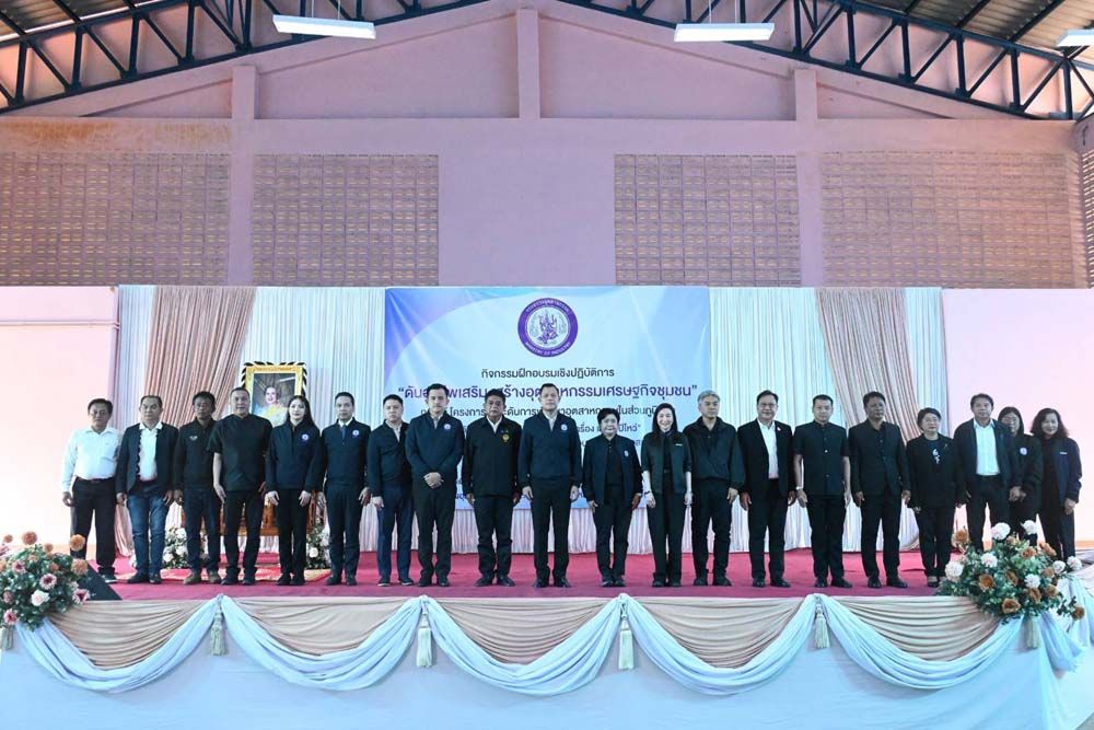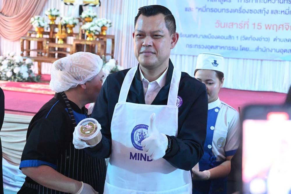 วันที่ 15 พฤศจิกายน 2568 นายธนกร วังบุญคงชนะ รัฐมนตรีว่าการกระทรวงอุตสาหกรรม เข้าร่วมเป็นประธานในพิธีเปิดการฝึกอบรมเชิงปฏิบัติการ “ดันอาชีพเสริม สร้างอุตสาหกรรมเศรษฐกิจชุมชน ” ภายใต้โครงการยกระดับการพัฒนาอุตสาหกรรมในส่วนภูมิภาค ซึ่งเป็นหลักสูตรการสอนทำกะปิหวานทรงเครื่องและหมี่กรอบทรงเครื่องให้แก่ประชาชนในอำเภอดอนสัก จำนวน 300 คน โดยมีวัตถุประสงค์เพื่อส่งเสริมและยกระดับขีดความสามารถของอุตสาหกรรมในระดับภูมิภาค และผลักดันเศรษฐกิจฐานรากตามยุทธศาสตร์ “ฝ่า–ฟัน–ดึง–ดัน” รวมทั้งแก้ปัญหารายได้และค่าครองชีพสูงของประชาชน ตามนโยบายเร่งด่วนของนายอนุทิน ชาญวีรกูล นายกรัฐมนตรี ที่กำชับให้ทุกกระทรวง “ช่วยประชาชนให้ได้ผลจริง เห็นผลเร็ว และกระจายรายได้สู่ท้องถิ่นอย่างเป็นรูปธรรม” โดยตั้งเป้าให้ดอนสักเป็น “พื้นที่นำร่อง” ในการสร้างอาชีพ–สร้างรายได้ ก่อนขยายไปยังทุกอำเภอของสุราษฎร์ฯ และเชื่อมสินค้าอาหารท้องถิ่นเข้ากับภาคท่องเที่ยวและเครือข่ายตลาดจังหวัดในระยะต่อไป โดยมีผู้บริการกระทรวงอุตสาหกรรมได้แก่ นายฐาปกรณ์ กุลเจริญ เลขานุการรัฐมนตรีว่าการกระทรวงอุตสาหกรรม นายพลวศุตม์ มหาเอี่ยมศิริ ประธานคณะที่ปรึกษาของรัฐมนตรีว่าการกระทรวงอุตสาหกรรม นายฉมพล แก้วเจริญโรจน์ คณะที่ปรึกษาของรัฐมนตรีว่าการกระทรวงอุตสาหกรรม นางสาวณัฏฐิญา เนตยสุภา อธิบดีกรมส่งเสริมอุตสาหกรรม นางดวงดาว ขาวเจริญ รองปลัดกระทรวงอุตสาหกรรม นายดุสิต อนันตรักษ์ รองอธิบดีกรมส่งเสริมอุตสาหกรรม และนางสาวจิรัฐิติกาล จันทราทิพย์ ประจำสำนักเลขาธิการนายกรัฐมนตรี เข้าร่วมด้วย และมี นายพิพิธ รัตนรักษ์ สส.สุราษฎร์ธานี เขต 2 นายวิทศักดิ์ จำเริญนุสิต รองผู้ว่าราชการจังหวัดสุราษฎร์ธานี นายสุพจน์ คำเงิน เลขานุการนายกองค์การบริหารส่วนจังหวัดสุราษฎร์ธานี นางสาวธนิตา ทองเงา อุตสาหกรรมจังหวัดสุราษฎร์ธานี และ นางคนึงนิจ ทยายุทธ ผู้อำนวยการศูนย์ส่งเสริมอุตสาหกรรมภาคที่ 10 และ นายเกษียร ไลยโฆษิต ประธานหอการค้าจังหวัดสุราษฎร์ธานี ร่วมให้การต้อนรับ