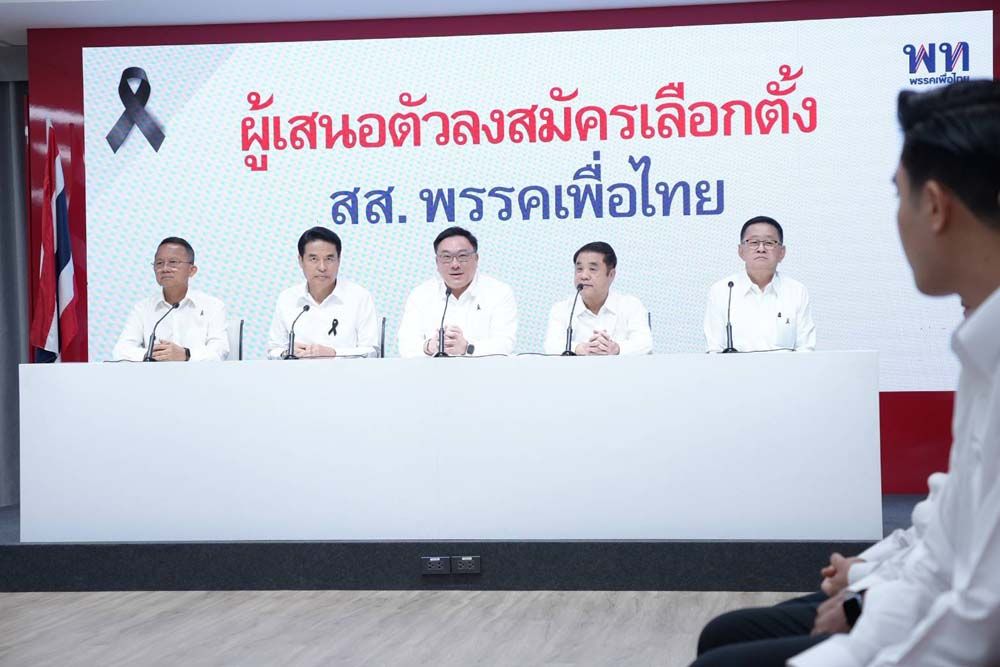 เมื่อเวลา 10.30 น. วันที่ 19 พฤศจิกายน ที่พรรคเพื่อไทย (พท.) นายจุลพันธ์ อมรวิวัฒน์ สส.เชียงใหม่ และหัวหน้าพรรค พท. พร้อมด้วย นายสรวงศ์ เทียนทอง สส.สระแก้วและรองหัวหน้าพรรคเพื่อไทย นายพงษ์กวิน จึงรุ่งเรืองกิจ รองหัวหน้าพรรค นายประเสริฐ จันทรรวงทอง เลขาธิการพรรค นายสุริยะ จึงรุ่งเรืองกิจ ผู้อำนวยการเลือกตั้งพรรค ร่วมเปิดตัวผู้สมัครสส. เป็นรอบที่ 5 จำนวน 3 คน