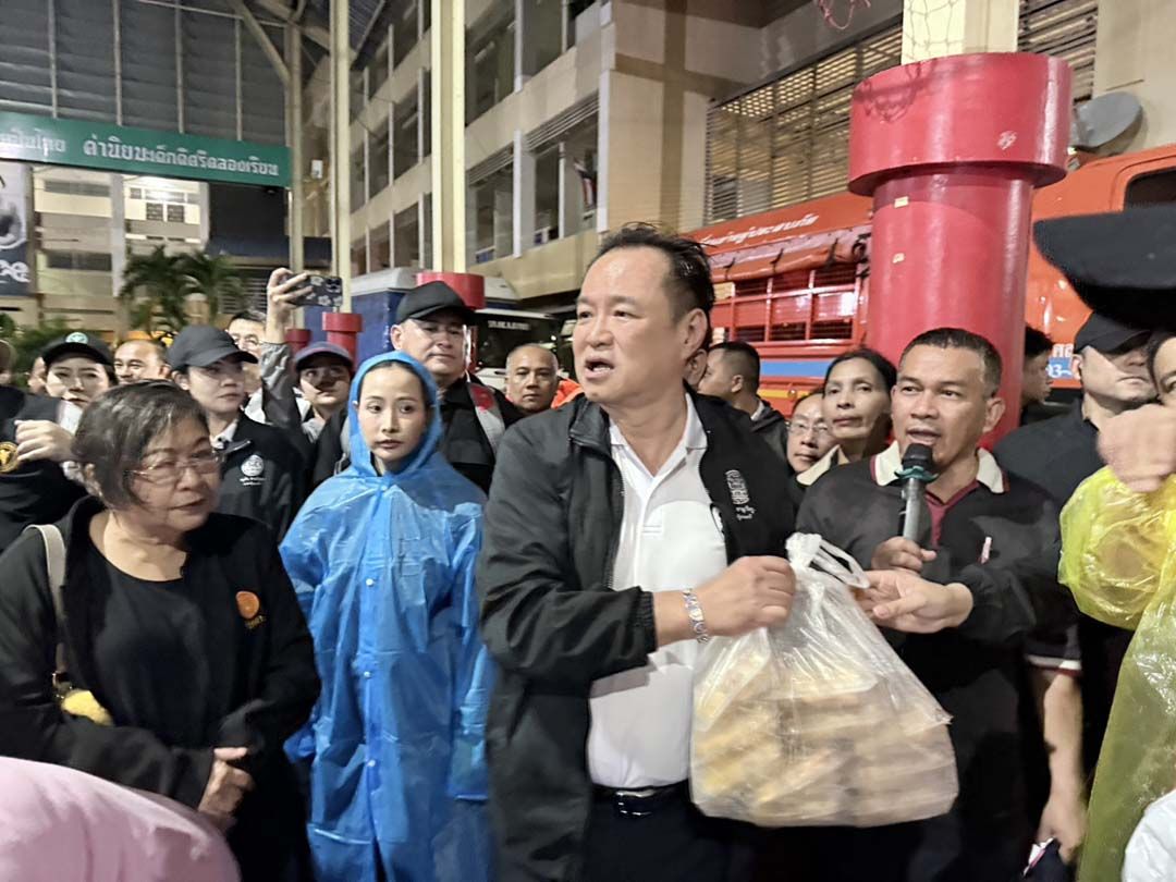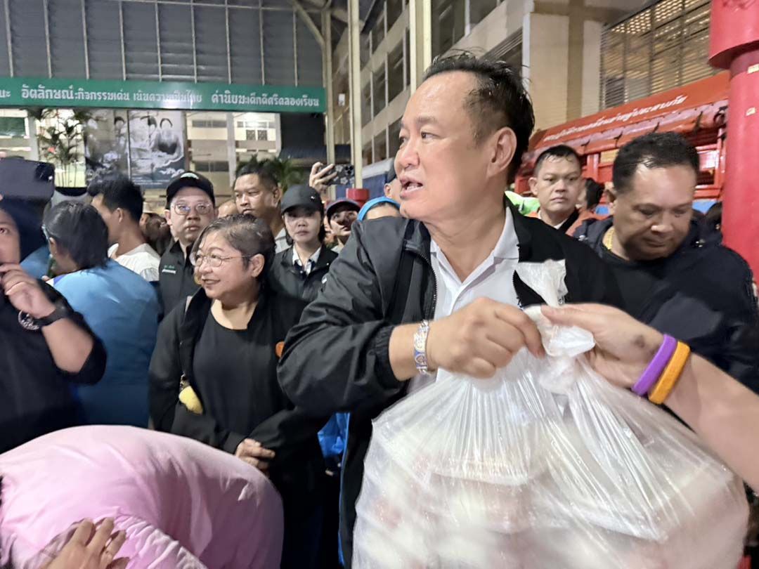 จากนั้นนายอนุทิน ได้มอบถุงยังชีพให้แก่ประชาชนที่อยู่บริเวณศูนย์พักพิง ก่อนเดินทางต่อไปยังศูนย์บัญชาการเทศบาลนครหาดใหญ่ ซึ่งเป็นศูนย์พักพิง และมีโรงครัวพระราชทาน โดยนายอนุทินจะไปเยี่ยมผู้ประสบภัยและให้กำลังใจเจ้าหน้าที่ผู้ปฏิบัติงานที่โรงครัวพระราชทาน และแจกอาหารปรุงสำเร็จและถุงยังชีพให้กับประชาชนผู้ประสบอุทกภัยก่อนที่นายกฯจะนั่งรถสำรวจความเสียหายในพื้นที่ชั้นในของเทศบาลนครหาดใหญ่
