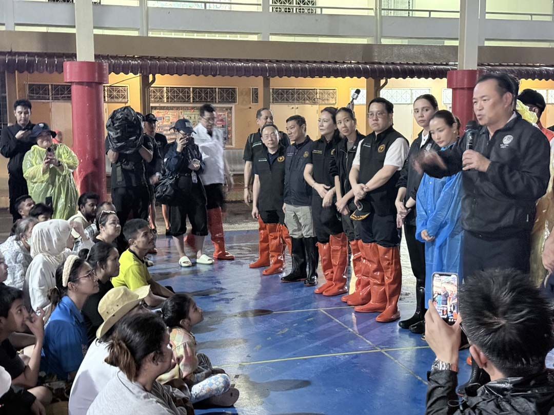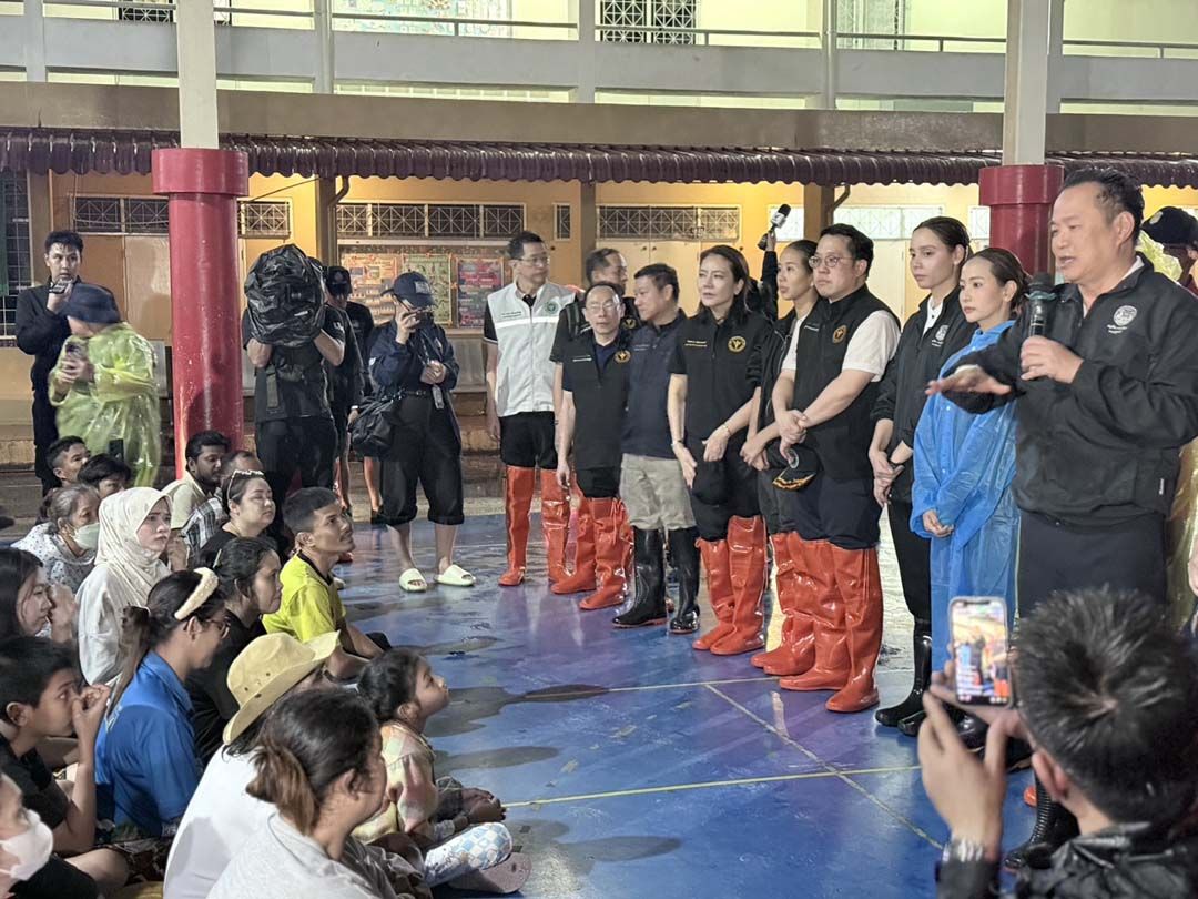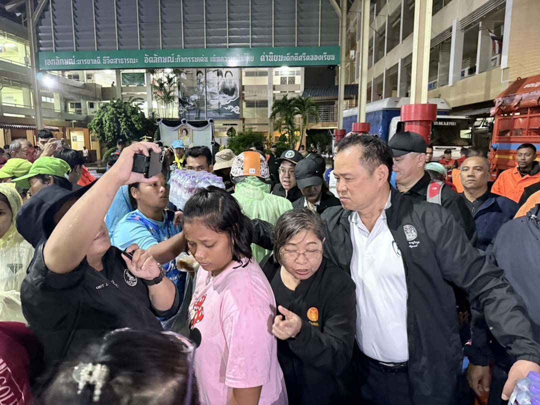 เมื่อเวลา 18.10 น.วันที่ 23 พฤศจิกายน 2568 นายอนุทิน ชาญวีรกูล นายกรัฐมนตรี และรมว.มหาดไทย และคณะ เดินทางถึงศูนย์พักพิงชั่วคราวโรงเรียนเทศบาล 4 (วัดคลองเรียน) โดนนายอนุทิน ได้กล่าวทักทายและให้กำลังใจผู้อพยพ จำนวน 200 คน ว่า การอยู่ศูนย์พักพิงอาจจะไม่สะดวกสบายเหมือนกับอยู่ที่บ้าน แต่ถ้าอยู่ตรงนี้แล้วปลอดภัยขอให้อยู่ไปก่อน เมื่อปลอดภัยแล้วค่อยกลับบ้าน อีกประมาณ 3 - 4 วัน น้ำจะค่อยๆระบายและลดลง โดยตนและบรรดาคณะรัฐมนตรีจะทำหน้าที่ในการช่วยเหลือประชาชน เพราะขณะนี้กระจายตัวไปยังจังหวัดต่างๆที่ประสบอุทกภัยแล้ว สำหรับเงินเยียวยาไม่ต้องห่วงในการประชุมคณะรัฐมนตรีวันที่ 25 พ.ย.จะรีบดำเนินการพิจารณาอนุมัติ เงินเยียวยาครอบครัวละ 9,000 บาท และหากเห็นว่าพื้นที่ไหนไม่ปลอดภัยขอให้เรียกประชาชนที่อยู่ในพื้นที่นั้นมายังศูนย์พักพิงจนกว่าจะปลอดภัยเพราะเรามีของอำนวยความสะดวกให้