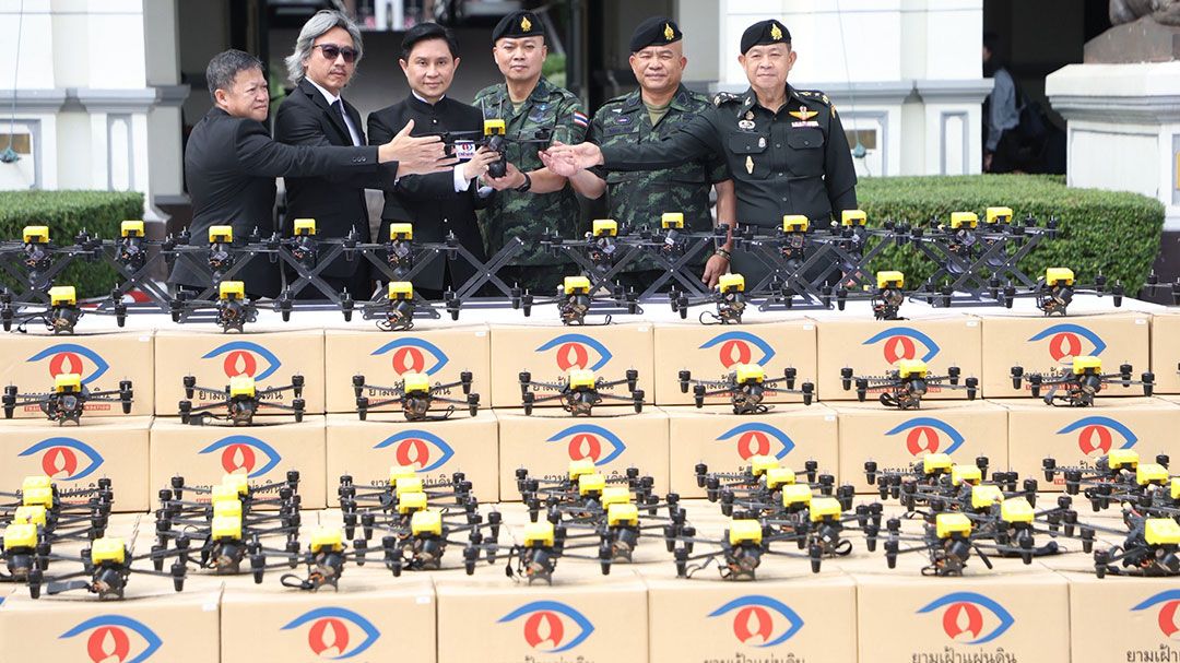 วันเดียวกัน นายปานเทพ พัวพงศ์พันธ์ ประธานมูลนิธิยามเฝ้าแผ่นดิน และคณะมอบอากาศยานไร้คนขับ (Drone) 100 ระบบ รวมมูลค่า 19 ล้านบาท ให้กับกองทัพบก เพื่อสนับสนุนในพื้นที่ชายแดนไทย-กัมพูชา โดยมีพลโท วีระยุทธ รักศิลป์ แม่ทัพภาคที่ 2 เป็นตัวแทนผู้รับมอบ และมีพลโท บุญสิน พาดกลาง อดีตแม่ทัพภาคที่ 2 ในฐานะที่ปรึกษาผู้บัญชาการทหารบก ร่วมเป็นสักขีพยานในพิธีฯ
