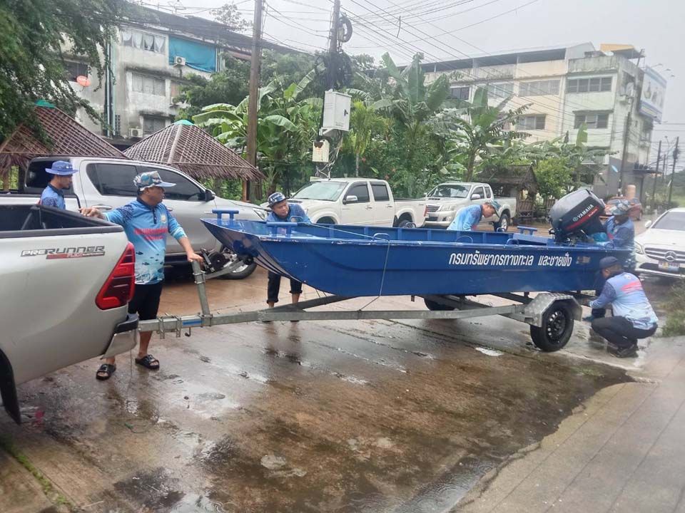 สำหรับยุทโธปกรณ์ทางน้ำที่เตรียมพร้อม ได้แก่ สปีดโบ๊ท 3 ลำ เรือยาง 12 ลำ และเรือท้องแบน 10 ลำ รวม 25 ลำ พร้อมรถยนต์สนับสนุนภารกิจอีก 21 คัน ขณะเดียวกัน ภารกิจจากทางอากาศยังคงดำเนินต่อเนื่อง โดยเฮลิคอปเตอร์ของ ทส. ถูกส่งเข้าสนับสนุนการขนย้ายผู้ประสบภัยในพื้นที่เข้าถึงยาก