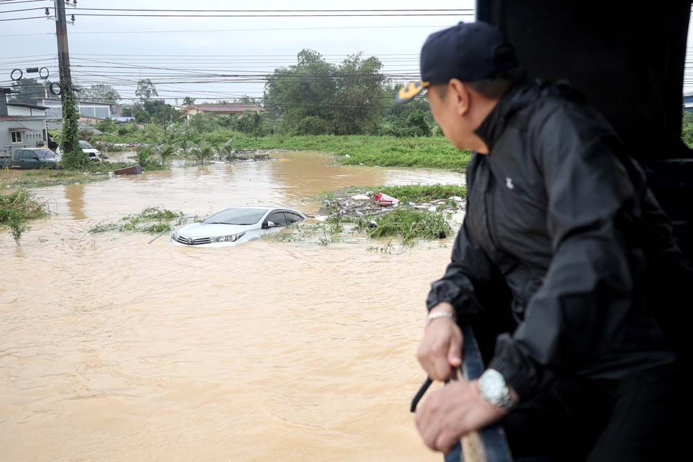 นายกฯนั่งรถทหารดูสถานการณ์น้ำท่วมรอบเมืองหาดใหญ่ แจกน้ำดื่ม-ข้าวกล่องผู้ประสบภัย รับ รู้สึกกดดัน-เป็นห่วงปชช. หลังมีเสียงสะท้อนชาวบ้านอดทนมา 5 วันแล้ว จ่อกลับ กทม.เรียกประชุมด่วน ออกมาตรการ ช่วยเหลือ-เยียวยา-ฟื้นฟู ลั่นทำทุกอย่างให้ดีที่สุด กำชับจว.ไหนประกาศพื้นที่ประสบภัย มีงบจัดการ