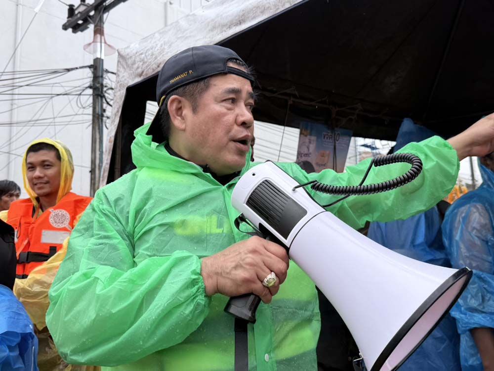 “เมื่อคืนที่ผ่านมา ผมทำงานตรงจุดนี้ถึงเที่ยงคืนเพื่ออพยพชาวบ้านที่ติดอยู่ในโลตัสออกมาให้ครบทั้งหมด ปัญหาตอนนี้ที่ผมได้แก้ไขคือการใช้เรือท้องแบนเข้าไปรับผู้ป่วยและผู้ประสบภัยเพราะเจ็ตสกีบางครั้งทำต้องทำความเร็วในการขับจึงอาจจะทำให้กระแสน้ำพัดเข้าบ้านพี่น้องประชาชนมากขึ้น ยืนยันว่า เรายังอพยพประชาชนในพื้นที่น้ำท่วมสูงอย่างต่อเนื่อง และผมจะยืนเคียงข้างประชาชนจนกว่าสถานการณ์จะดีขึ้น“ร.อ.ธรรมนัส กล่าว