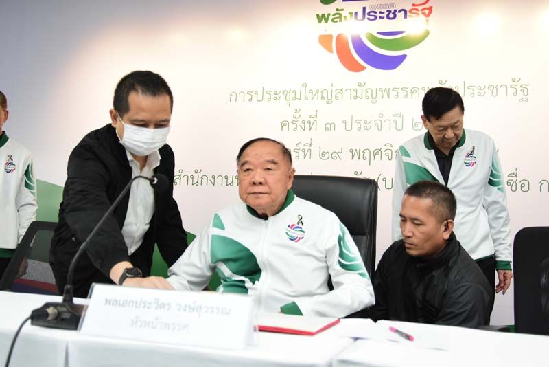 เมื่อเวลา 11.10 น. วันที่ 29 พ.ย. ที่พรรคพลังประชารัฐ (พปชร.) พล.อ.ประวิตร วงษ์สุวรรณ ส.ส.บัญชีรายชื่อ และหัวหน้าพรรค พปชร. ให้สัมภาษณ์ภายหลังการประชุมใหญ่สามัญประจำปีพรรค พปชร. ว่า การประชุมเป็นไปด้วยความเรียบร้อยดี