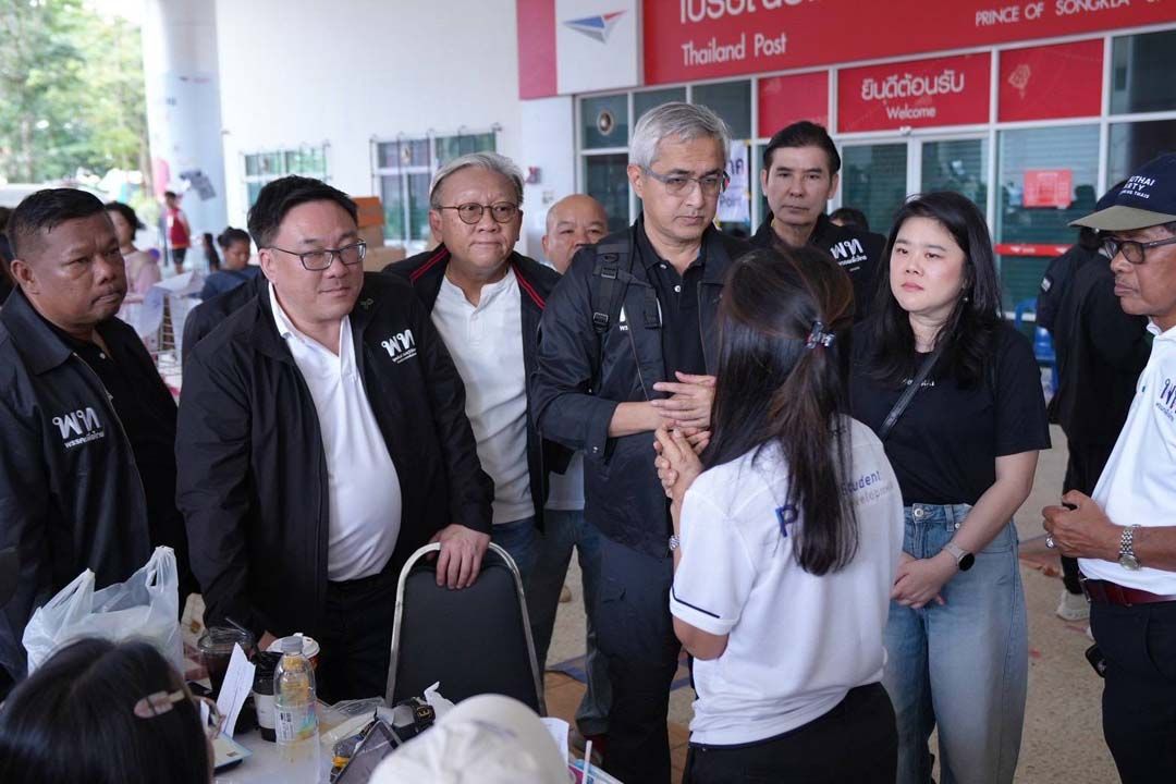 เมื่อวันที่ 30 พฤศจิกายน ที่อาคารกีฬาและนันทนาการ ศูนย์กีฬาและสุขภาพ ม.อ. หาดใหญ่ พรรคเพื่อไทย (พท.) นำโดย นายจุลพันธ์ อมรวิวัฒน์ สส.เชียงใหม่ และหัวหน้าพรรค พร้อมด้วย น.ส.ธีรรัตน์ สำเร็จวาณิชย์ สส.กทม.และรองหัวหน้าพรรค นายก่อแก้ว พิกุลทอง สส.บัญชีรายชื่อ และรองหัวหน้าพรรค ทพญ.ศรีญาดา ปาลิมาพันธ์ สส.บัญชีรายชื่อ และนายทะเบียนพรรค นายอนุสรณ์ เอี่ยมสะอาด สส.บัญชีรายชื่อ และกรรมการบริหารพรรค น.ส.ลิณธิภรณ์ วริณวัชรโรจน์ รองเลขาธิการพรรค นายศึกษิษฏ์ ศรีจอมขวัญ โฆษกพรรค น.ส.ชญาภา สินธุไพร สส.ร้อยเอ็ด และรองโฆษกพรรค นายพายุ เนื่องจำนงค์ รองโฆษกพรรค นายณณัฏฐ์ หงษ์ชูเวช และ น.ส.ชยิกา วงศ์นภาจันทร์ ร่วมลงพื้นที่ให้กำลังใจผู้ประสบภัย อาสาสมัคร บุคลากรทางการแพทย์ ในศูนย์อพยพ พร้อมมอบเครื่องใช้ทางการแพทย์ ยารักษาโรคเบื้องต้นให้กับหน่วยแพทย์ชั่วคราว
