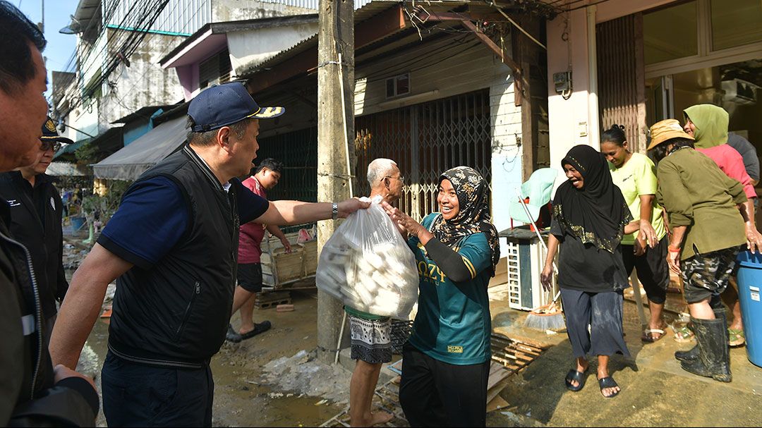นายกฯ หอบทีมเศรษฐกิจบินหาดใหญ่ครั้งที่ 5 ลุยฟื้นฟูหลังน้ำลด “นายกแป้น” โผล่รับร่วมคณะก่อนขึ้นรถยกสูงเข้าพื้นที่-ลงเดินแจกอาหาร-ยารักษาโรคถึงหน้าบ้าน พร้อมให้กำลังใจ ย้ำอย่าลืมลงทะเบียนรับเงินเยียวยา 9 พัน ศป.กฉ.บูรณาการทุกภาคส่วนระดมความช่วยเหลือลงพื้นที่หาดใหญ่ ฟื้นฟูทุกมิติ ระบบสาธารณูปโภคพื้นฐาน ไฟฟ้า–น้ำประปา–สื่อสาร กลับสู่ภาวะปกติเร็วที่สุด พร้อมกระจายความช่วยเหลือสู่ผู้ประสบอุทกภัยต่อเนื่อง เตรียมสายด่วน 1584 1599และ191 รองรับประชาชนสอบถาม “รถที่ถูกเคลื่อนย้าย” ปภ.รายงานสรุปสถานการณ์อุทกภัย9จังหวัดภาคใต้ ระดับน้ำลดลงต่อเนื่อง ปภ.เร่งช่วยเหลือบูรณาการหน่วยงานในพื้นที่ยังคงระดมกำลังแจกถุงยังชีพ เครื่องอุปโภคบริโภคที่จำเป็น