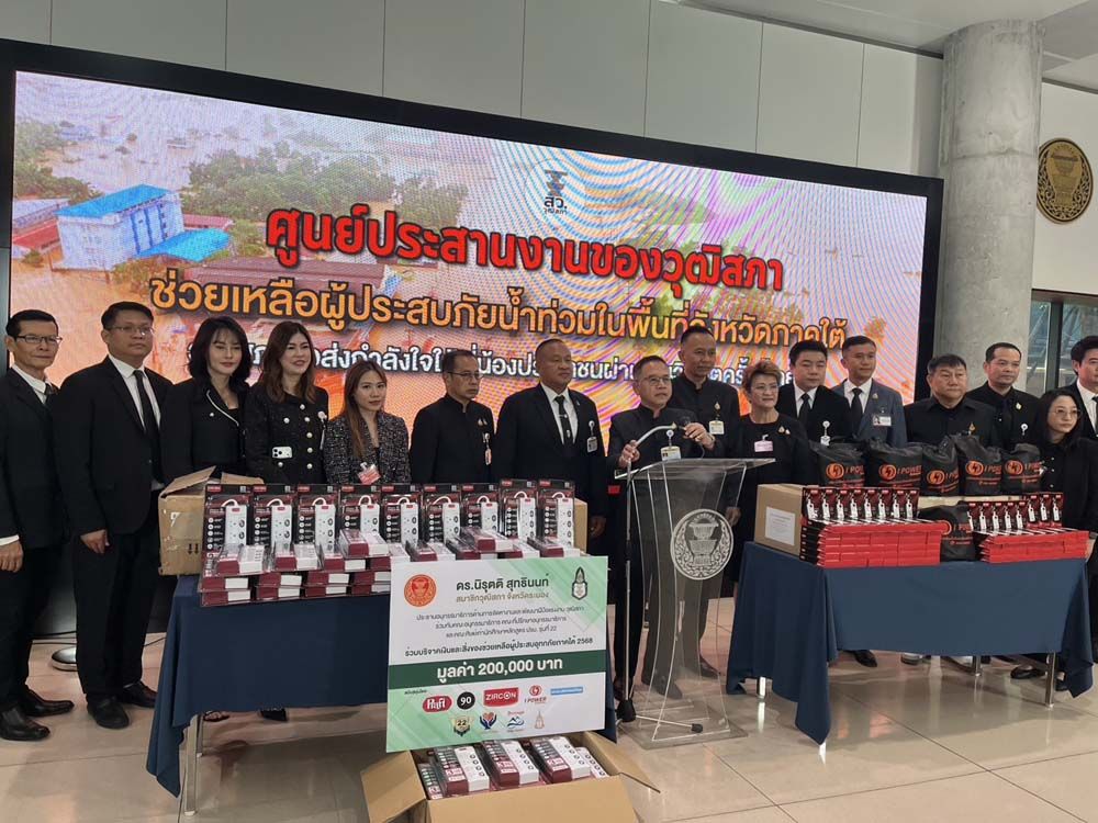 1ธ.ค.2568 ที่รัฐสภา พล.อ.เกรียงไกร ศรีรักษ์ รองประธานวุฒิสภา คนที่หนึ่ง รับมอบเงินและสิ่งของจากคณะอนุกรรมาธิการด้านการจัดหางานและพัฒนาฝีมือแรงงาน ในคณะกรรมาธิการการแรงงาน วุฒิสภา นำโดย นายนิรุตติสุทธินนท์ รองประธานคณะกรรมาธิการฯ และประธานคณะอนุกรรมาธิการฯ พร้อมทั้งคณะศิษย์เก่านักศึกษาหลักสูตรปรม. รุ่นที่ 22 สถาบันพระปกเกล้า เพื่อส่งมอบให้กับสมาชิกวุฒิสภาภาคใต้นำไปช่วยเหลือผู้ประสบอุทกภัยในพื้นที่ภาคใต้ ทั้งนี้ สิ่งของบริจาคประกอบไปด้วย อุปกรณ์เครื่องใช้ไฟฟ้าที่จําเป็น อาทิ พาวเวอร์แบงค์ ปลั๊กไฟ และอุปกรณ์ยังชีพที่จําเป็นอื่นๆ รวมมูลค่า 200,000 บาท เพื่อนําไปช่วยเหลือผู้ที่ได้รับผลกระทบจากสถานการณ์อุทกภัยในพื้นที่ภาคใต้