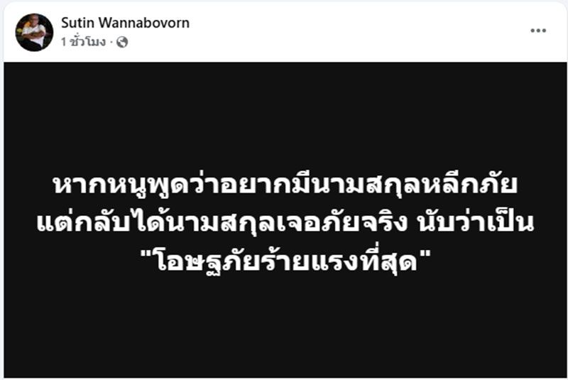 วันที่ 2 ธันวาคม 2568 นายสุทิน วรรณบวร อดีตผู้สื่อข่าวสำนักข่าวต่างประเทศ โพสต์ข้อความเฟซบุ๊ก ระบุว่า หากหนูพูดว่าอยากมีนามสกุลหลีกภัย แต่กลับได้นามสกุลเจอภัยจริง นับว่าเป็น “โอษฐภัยร้ายแรงที่สุด”