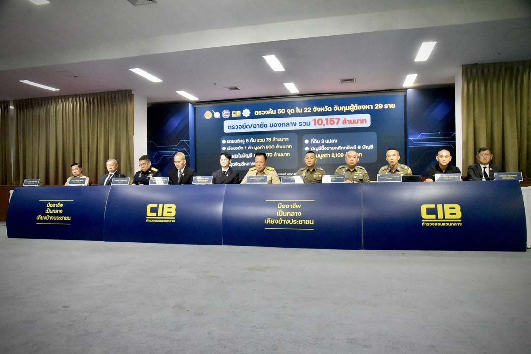 เมื่อวันที่ 3 ธันวาคม 2568 ที่ห้องประชุมชัยจินดา ชั้น 2 อาคารประชารักษ์ กองบัญชาการตำรวจสอบสวนกลาง (บช.ก.) นายอนุทิน ชาญวีรกูล นายกรัฐมนตรี และรมว.มหาดไทย เป็นประธานในการแถลงผลปฏิบัติการ “ถอนรากสแกมเมอร์ข้ามชาติ” ปูพรมตรวจค้นเป้าหมาย 50 จุด ใน 22 จังหวัดทั่วประเทศ ซึ่งสามารถจับกุมผู้กระทำความผิดและยึดของกลางรายการสำคัญ ทั้งเรือยอชต์ รถหรู ที่ดิน และอายัดเงินในบัญชีรวมมูลค่ากว่า 10,165 ล้านบาท โดยมี นายไชยชนก ชิดชอบ รัฐมนตรีว่าการกระทรวงดิจิทัลเพื่อเศรษฐกิจและสังคม พล.ต.ท.รุทธพล เนาวรัตน์ รัฐมนตรีว่าการกระทรวงยุติธรรม พล.ต.อ.กิตติ์รัฐ พันธุ์เพ็ชร์ ผู้บัญชาการตำรวจแห่งชาติ พล.ต.ท.ณัฐศักดิ์ เชาวนาศัย ผู้บัญชาการตำรวจสอบสวนกลาง พล.ต.ต.โสภณ สารพัฒน์ รองผู้บัญชาการตำรวจสอบสวนกลาง และ นายเทพสุ บวรโชติดารา เลขาธิการ สำนักงานป้องกันปราบปรามการฟอกเงิน (ปปง.)