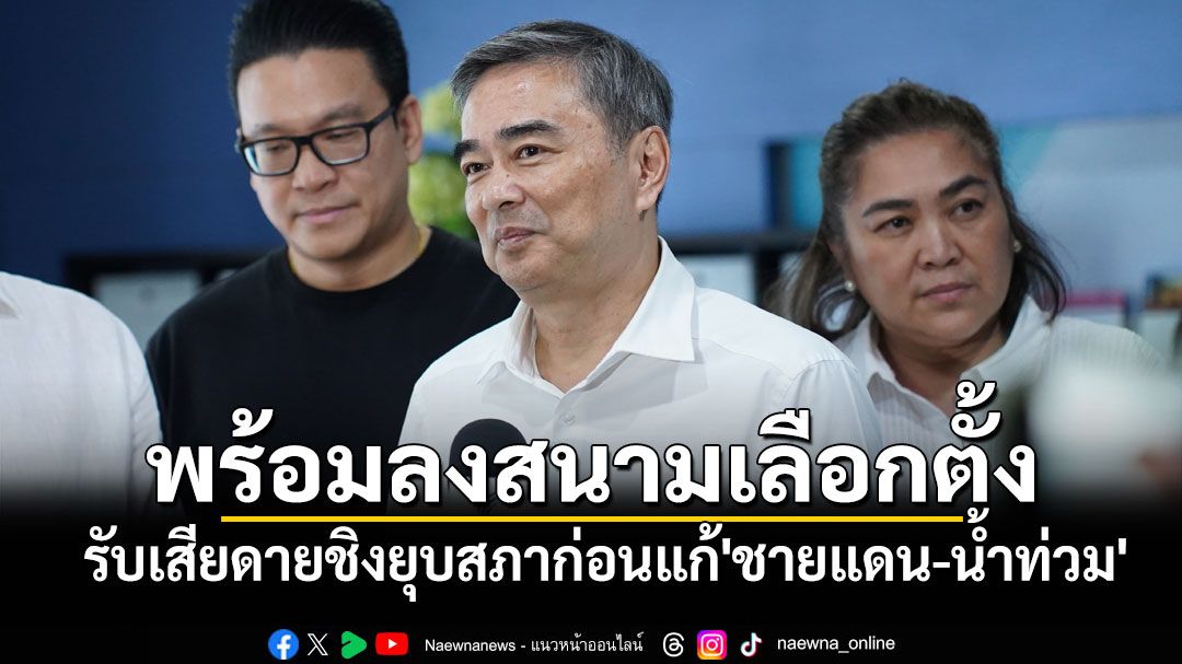 'มาร์ค'ลั่นพร้อมลงสนามเลือกตั้ง รับเสียดายชิงยุบสภาก่อนแก้ปัญหา'ชายแดน-น้ำท่วม' สับสนฝ่ายต้องการแก้ไขรธน. กลับเลือกเส้นทางให้จบลงแบบนี้ ไม่หวั่น รบ.รักษาการยาวลากการเลือกตั้ง เหตุสู้รบชายแดน ชี้ อำนาจอยู่ที่กกต.