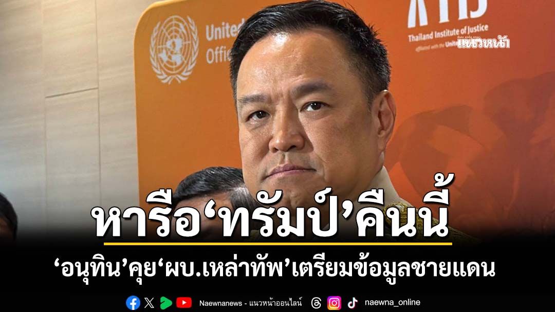‘อนุทิน’คุย‘ผบ.เหล่าทัพ’เตรียมข้อมูลชายแดนไทย-กัมพูชา ก่อนหารือ‘ทรัมป์’คืนนี้ บอกประเมินสถานการณ์ฝ่ายไทยดี ขออย่าวิเคราะห์ยืดเยื้อกี่วันให้ฝ่ายศัตรูรู้