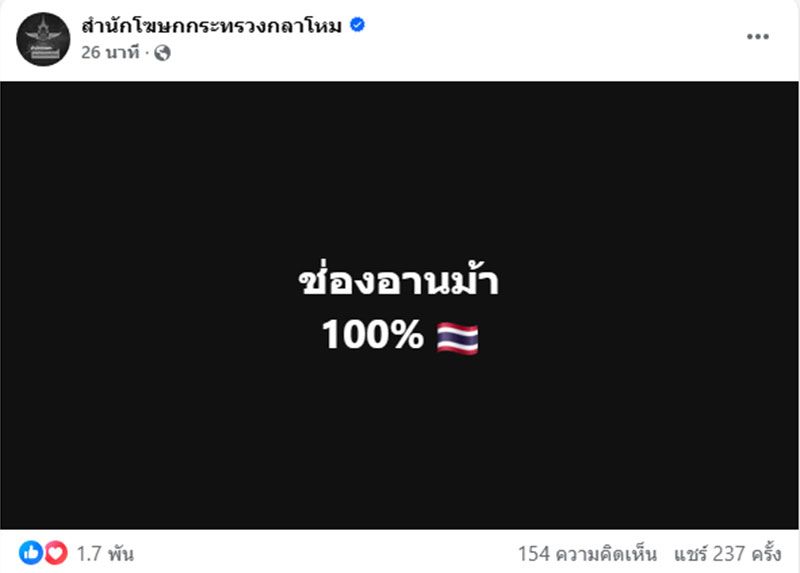 วันที่ 12 ธันวาคม 2568 เมื่อเวลา 16.17 น. สำนักโฆษกกระทรวงกลาโหม โพสต์เฟซบุ๊ก ยืนยันว่า ไทยสามารถควบคุมพื้นที่ “ช่องอานม้า” ได้แล้ว 100% หลังมีเหตุปะทะตลอดช่วง 3-4 วันที่ผ่านมา