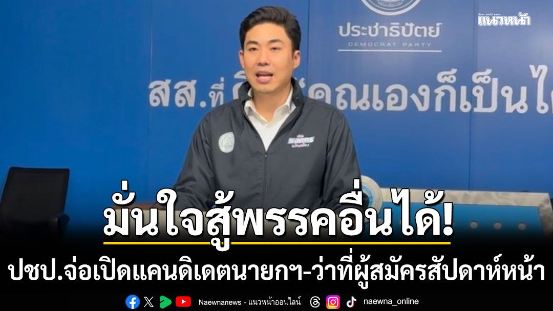 ‘ปชป.’จ่อเปิดแคนดิเดตนายกฯ-ว่าที่ผู้สมัคร-นโยบายสัปดาห์หน้า มั่นใจแคนดิเดตนายกฯ สู้พรรคอื่นได้ ‘โฆษกปชป.’เผย 6 อดีต สส. แสดงเจตจำนงลงเขตเดิมรวม‘ชวน-จุรินทร์’ด้าน ’บัญญัติ‘ไม่แสดงเจตจำนงลงสมัครสส. ด้าน’อัศวิน‘ดอดสมัครเป็นสมาชิกปชป. แล้ว คาดช่วยลูกสู้เลือกตั้งกทม. เขต4