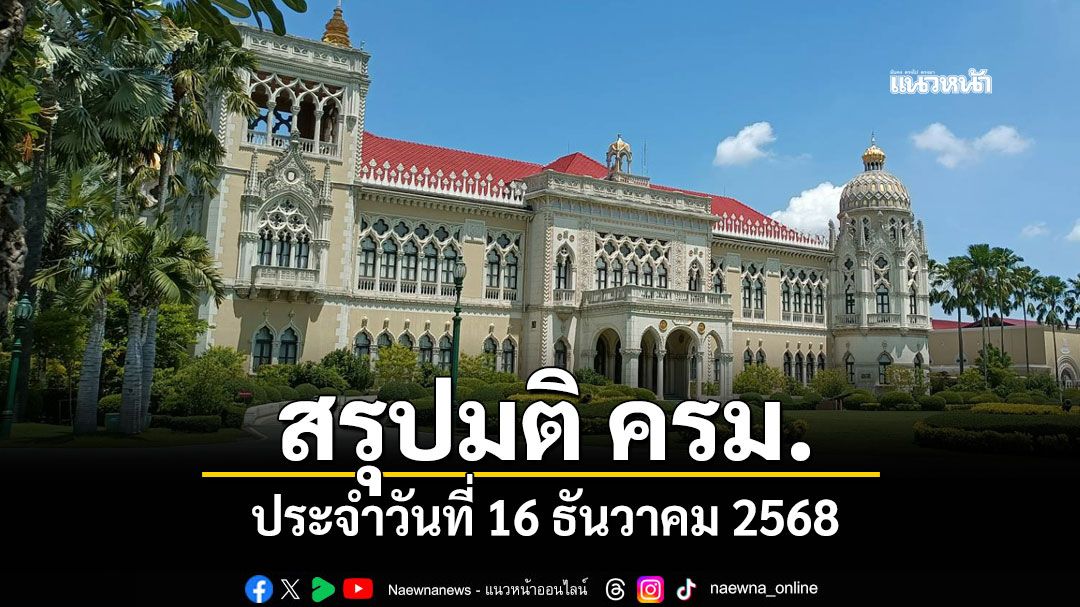 วันนี้ 16 ธันวาคม 2568 เวลา 10.00 น. นายอนุทิน ชาญวีรกูล นายกรัฐมนตรี และรัฐมนตรีว่าการกระทรวงมหาดไทย เป็นประธานการประชุมคณะรัฐมนตรี ณ ห้องประชุม 501 ตึกบัญชาการ 1 ทำเนียบรัฐบาล ซึ่งสรุปสาระสำคัญดังนี้
