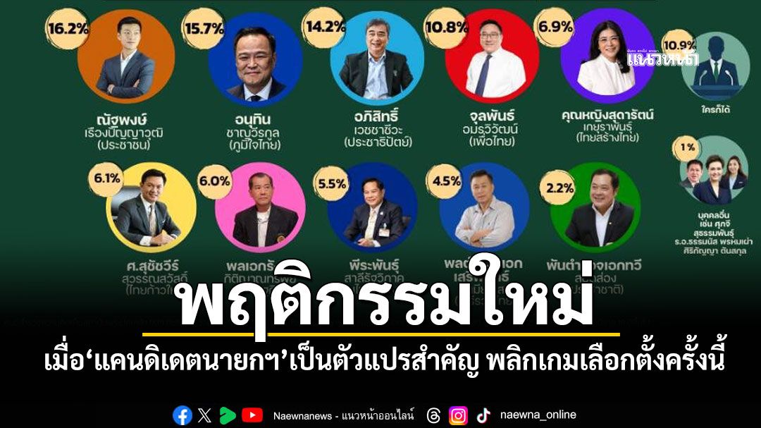 วันนี้ รายชื่อแคนดิเดตนายกฯ ไม่ใช่เพียง“สัญลักษณ์เชิงพิธีกรรม” แต่กลายเป็นปัจจัยเชิงพฤติกรรมการเลือกตั้ง ที่สามารถดึง หรือผลักคะแนนเสียงได้จริง
