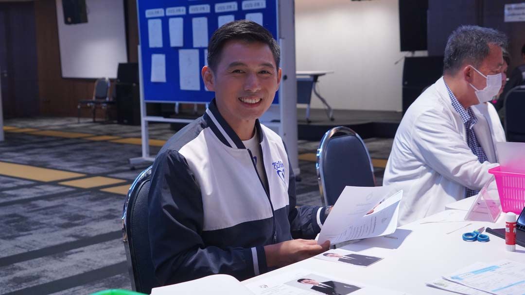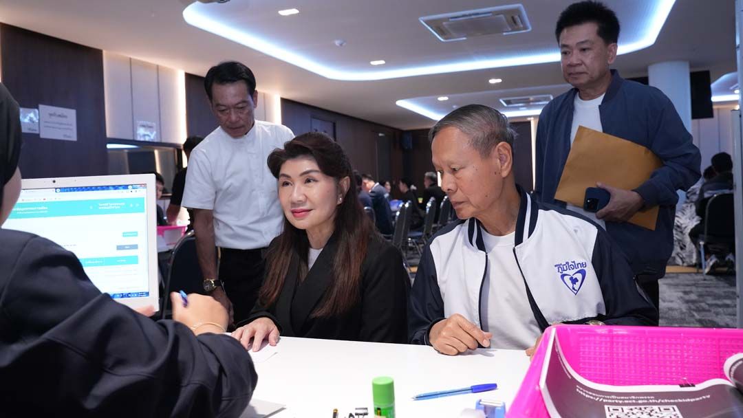 นายสันติ พร้อมพัฒน์ พร้อมด้วยลูกชาย นายพัฒนา พร้อมพัฒน์ ว่าที่ผู้สมัคร สส.ระบบบัญชีรายชื่อ, นายพงศกร อรรณนพพร , น.ส.ปัณรสี ครุฑขุนทด