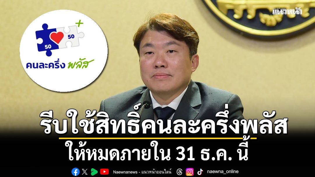 วันที่ 17 ธันวาคม 2568 นายสิริพงศ์ อังคสกุลเกียรติ โฆษกประจำสำนักนายกรัฐมนตรี เปิดเผยความคืบหน้าการใช้จ่ายโครงการคนละครึ่งพลัส เฟส 1 ล่าสุด ยังได้รับผลตอบรับที่ดีจากประชาชนและร้านค้าที่เข้าร่วมโครงการเป็นอย่างดี โดยรัฐบาลขอแจ้งเตือนผู้ที่ยังใช้สิทธิ์ไม่ครบกว่า 14 กว่าล้านคน ให้เร่งดำเนินการใช้จ่ายให้หมดภายในวันที่ 31 ธ.ค.นี้ เนื่องจากเมื่อโครงการสิ้นสุดลง ระบบจะดำเนินการตัดวงเงินสิทธิที่คงเหลือทั้งหมดคืนโดยอัตโนมัติ ขอให้ประชาชนใช้โอกาสในช่วงโค้งสุดท้ายนี้เพื่อใช้จ่ายให้เกิดประโยชน์สูงสุดและร่วมกันกระตุ้นเศรษฐกิจในช่วงปลายปี