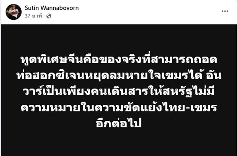 เกี่ยวกับเรื่องนี้ นายสุทิน วรรณบวร อดีตผู้สื่อข่าวสำนักข่าวต่างประเทศ ได้แสดงความคิดเห็นผ่านเฟซบุ๊กว่า "ทูตพิเศษจีน" คือ ของจริงที่สามารถถอดท่อออกซิเจนหยุดลมหายใจเขมรได้ "อันวาร์" เป็นเพียงคนเดินสารให้สหรัฐ ไม่มีความหมายในความขัดแย้งไทย-เขมรอีกต่อไป