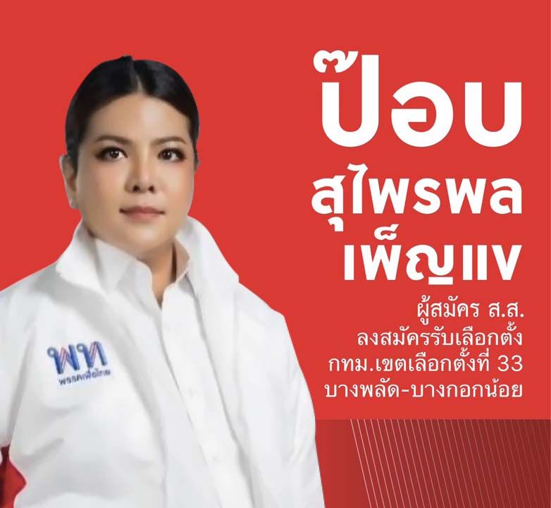 ‘สุไพรพล เพ็ญแข’ชู‘30 บาทรักษาทุกที่’นโยบายหลักหาเสียงเขตบางกอกน้อย-บางพลัด ฝากความหวังประชาชนกับเพื่อไทย