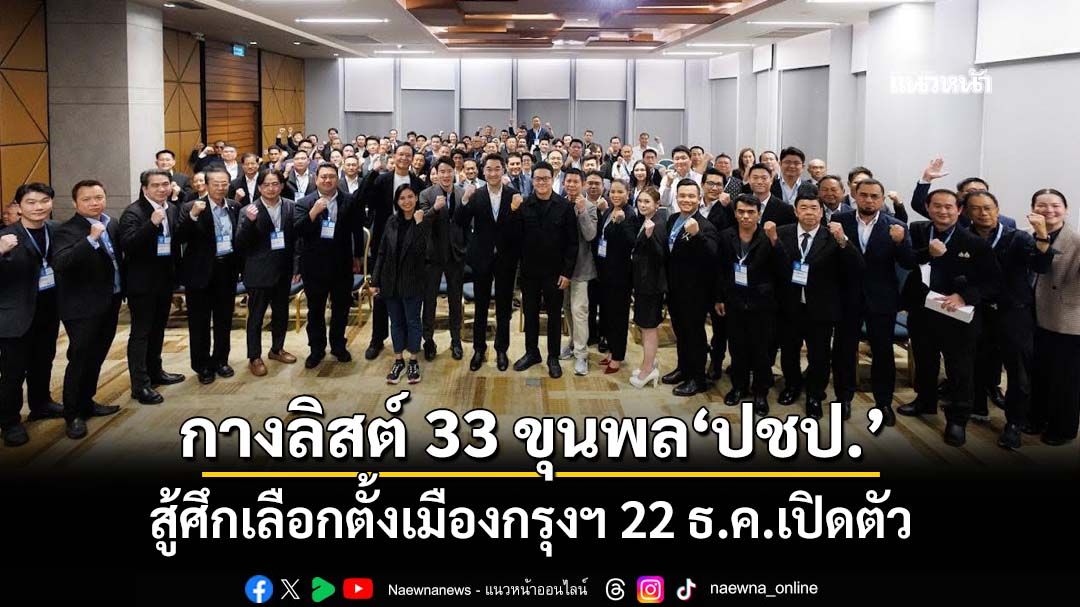 เช็กที่นี่!‘พรรคประชาธิปัตย์’กาง 33 ขุนพลสู้ศึกเลือกตั้งเมืองกรุงฯ เปิดตัว 22 ธ.ค.นี้ ย้ำผ่านกระบวนการคัดเลือกหลายขั้นตอน เตรียมดึงคนที่ไม่ได้ไปต่อร่วมทำงานกับพรรค