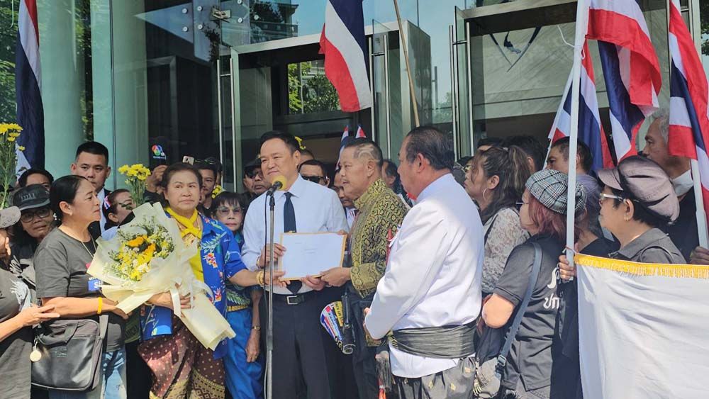 "อนุทิน" เปิดพรรค รับดอกไม้-หนังสือกลุ่มศปปส. ให้กำลังใจ ปกป้องอธิบไตย ลั่น ไทยไม่มีแพ้ ขอมั่นใจ พร้อมสู้เคียงบ่าเคียงไหล่ ทหาร