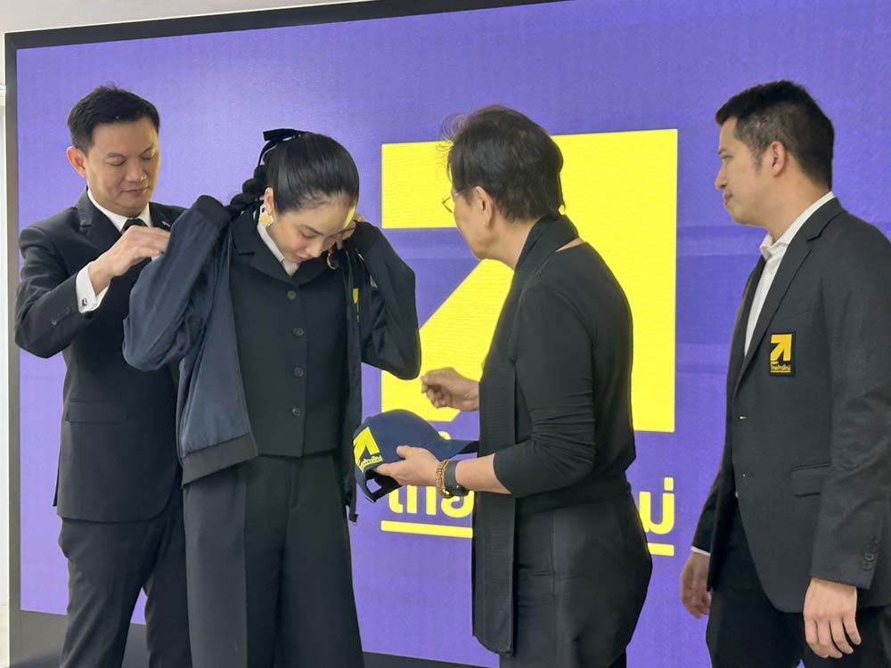 จากนั้นคุณหญิงกัลยา โสภณพานิช ประธานที่ปรึกษาพรรคไทยก้าวใหม่ ได้มอบเสื้อและหมวกสัญลักษณ์ของพรรคให้กับน.ส.จิตภัสร์ และถ่ายรูปร่วมกัน