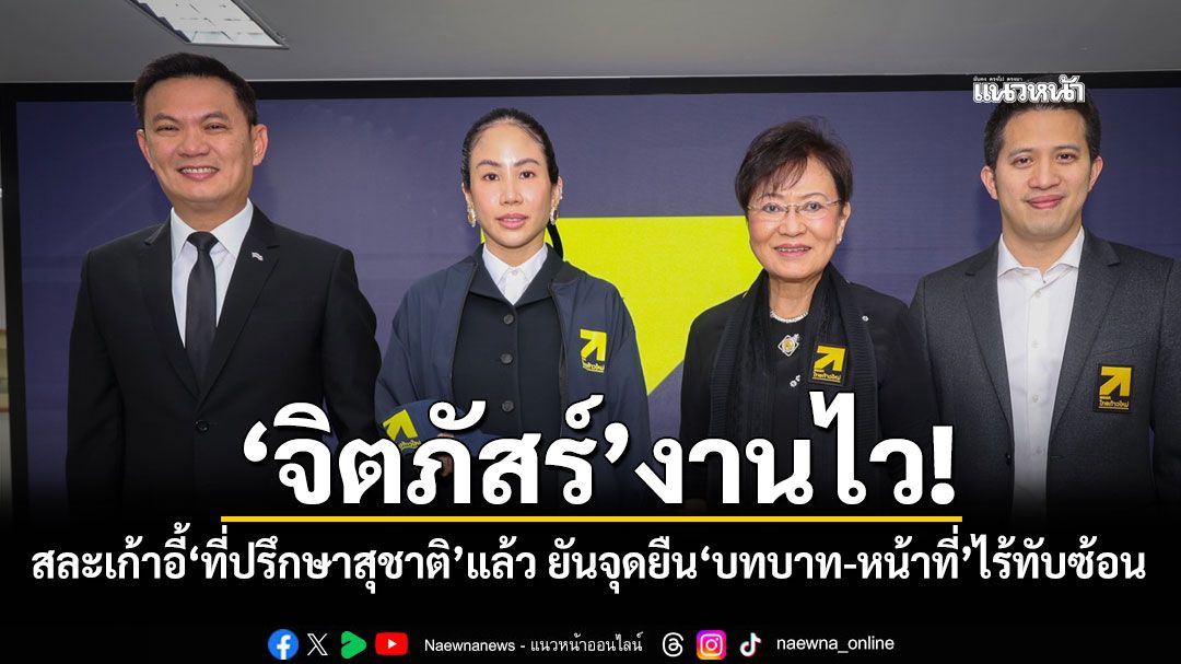 "จิตภัสร์"งานไว! สละเก้าอี้"ที่ปรึกษาสุชาติ"แล้ว ยันจุดยืน"บทบาท-หน้าที่"ไร้ทับซ้อน ขอเดินหน้าลุย"ผู้แทนฯไทยก้าวใหม่"เต็มตัว