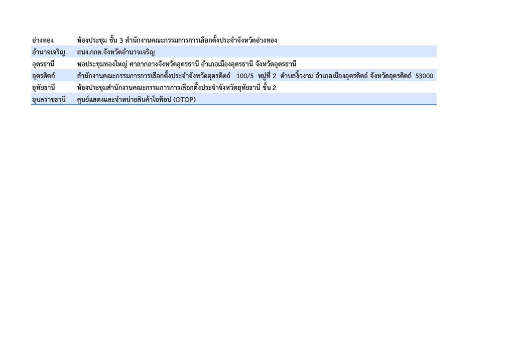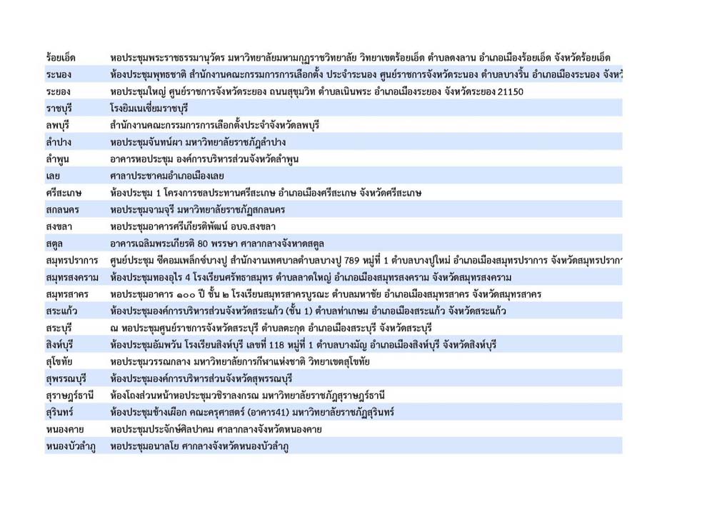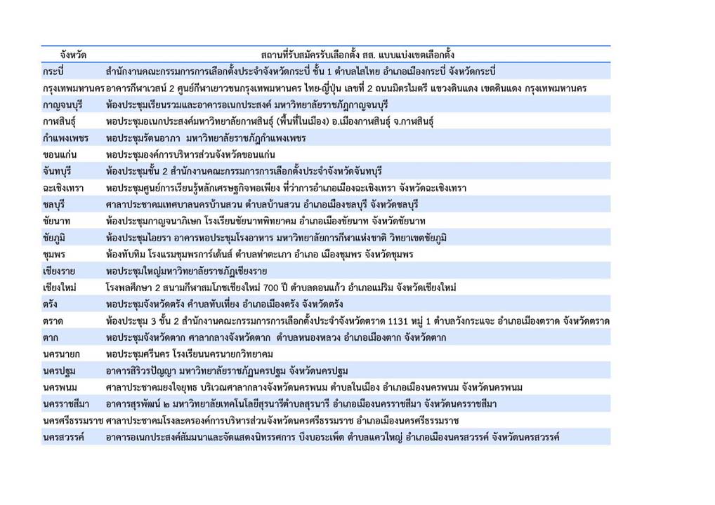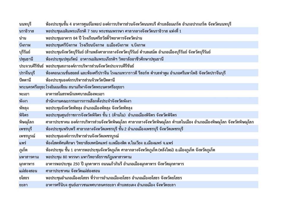 สำนักงาน กกต. ขอประชาสัมพันธ์ประกาศผู้อำนวยการการเลือกตั้งประจำเขตเลือกตั้ง เรื่องกำหนดสถานที่รับสมัครรับเลือกตั้ง สส. แบบแบ่งเขตเลือกตั้ง จำนวน 76 จังหวัด และกรุงเทพมหานคร