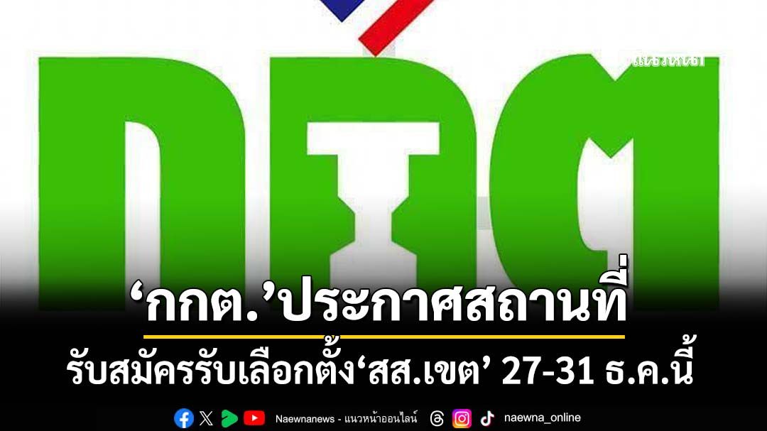 เช็กที่นี่! ‘กกต.’ประกาศสถานที่รับสมัครรับเลือกตั้ง‘สส.เขต’ 27-31 ธ.ค.นี้