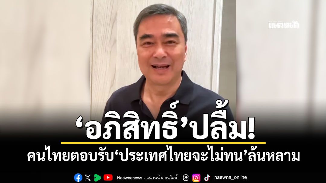 "อภิสิทธิ์"ปลื้ม! คนไทยตอบรับ"ประเทศไทยจะไม่ทน"ล้นหลาม เผยเสียงสะท้อนอยากล้าง"นักการเมืองเทา-ทุนใหญ่" จี้ปฏิรูปการศึกษา-แก้ประชานิยม พร้อมชวนทำโพลใหญ่พรุ่งนี้