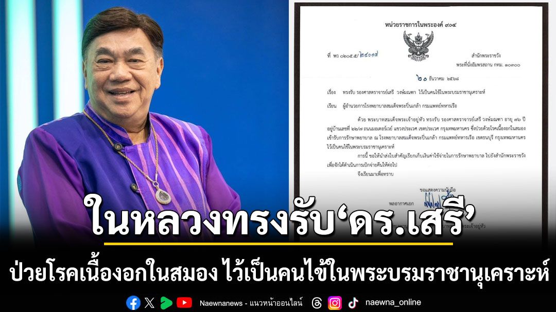 วันที่ 20 ธันวาคม 2568 พล.อ.อ.สถิตย์พงษ์ สุขวิมล ราชเลขานุการในพระองค์พระบาทสมเด็จพระเจ้าอยู่หัว มีหนังสือถึงผู้อำนวยการโรงพยาบาลสมเด็จพระปิ่นเกล้า กรมแพทย์ทหารเรือ แจ้งว่า พระบาทสมเด็จพระเจ้าอยู่หัว ทรงพระกรุณาโปรดเกล้าโปรกกระหม่อมรับ รศ.ดร.เสรี วงษ์มณฑา อายุ 76 ปี ซึ่งป่วยด้วยโรคเนื้องอกในสมอง เข้ารับการรักษาพยาบาล ณ โรงพยาบาลสมเด็จพระปิ่นเกล้า กรมแพทย์ทหารเรือ เขตธนบุรี กรุงเทพมหานครไว้เป็นคนไข้ในพระบรมราชานุเคราะห์