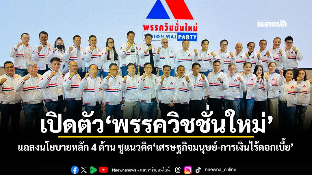 เปิดตัว"พรรควิชชั่นใหม่" แถลงนโยบายหลัก 4 ด้าน ชูแนวคิด"เศรษฐกิจมนุษย์-การเงินไร้ดอกเบี้ย" หัวใจสำคัญทางเศรษฐกิจ ขณะที่"ธงรบ-พิเชษฐ"เป็นแคนดิเดตนายกรัฐมนตรี ประกาศพร้อมลงสู้ศึกเลือกตั้ง เป็นทางเลือกใหม่ประเทศ