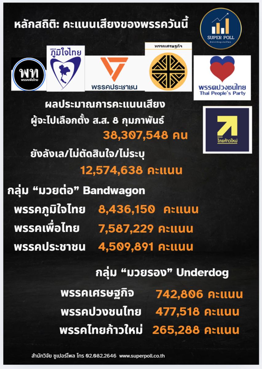 กล่าวโดยสรุป ผลการสำรวจของซูเปอร์โพลครั้งนี้ ไม่ได้มีเป้าหมายเพียงการจัดอันดับพรรคการเมือง หากแต่ต้องการสะท้อน “เสียงของประชาชนในช่วงเวลาปัจจุบัน” และชี้ให้เห็นว่าการเลือกตั้งยังคงเป็นกระบวนการที่มีชีวิต มีพลวัต และเปิดโอกาสให้ทุกพรรคการเมืองแข่งขันกันด้วยนโยบาย ความจริงใจ และความรับผิดชอบต่อสังคม