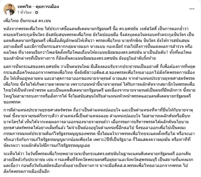 เพื่อไทย ปั่นกระแส ดร.เชน