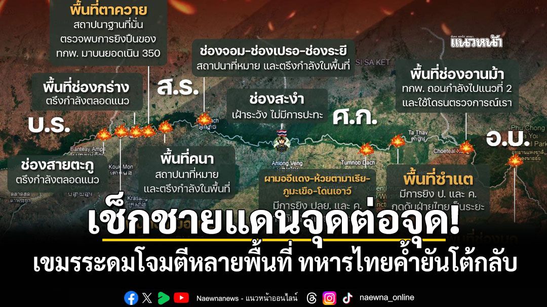 ไม่หยุดยิง! เขมรระดมกำลัง-อาวุธหนัก โจมตีหลายพื้นที่ ทภ.2 หวังยึดคืน ส่วนทหารไทยค้ำยันโต้กลับ ส่วนช่องสายตะกู วางกำลังเผชิญหน้า พบ BM-21 ตกพื้นที่พลเรือน 4 ลูก